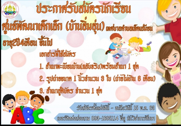 ประกาศรับสมัครนักเรียนเข้าเรียน ศูนย์พัฒนาเด็กเล็กเทศบาลตำบลเจ็ดเสมียน (บ้านอิ่มอุ่น)