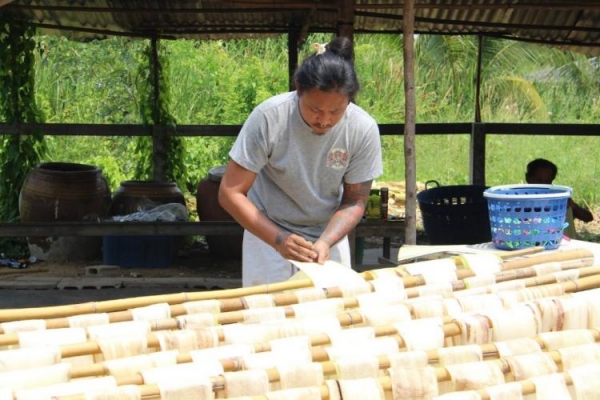 กระเป๋ากาบกล้วยนวัตกรรมรักษ์โลกบ้านช่างสกุลบายศรี วิสาหกิจชุมชนบ้านช่างสกุลบายศรี อ.โพธาราม จ.ราชบุรี นำต้นกล้วยมารังสรรค์สร้างนวัตกรรมผ่านความร้อนธรรมชาติ ภายใต้แบรนด์ตานี เป็นกระเป๋าแฟชั่นสวยงาม ส่งเข้าประกวดแข่งขันระดับประเทศได้รับรางวัลชนะเลิศ KBO กรมพัฒนาชุมชน ขณะนี้มีออเดอร์สั่ง ผลิตไม่ทันกับยอดจองทั้งในและต่างประเทศ