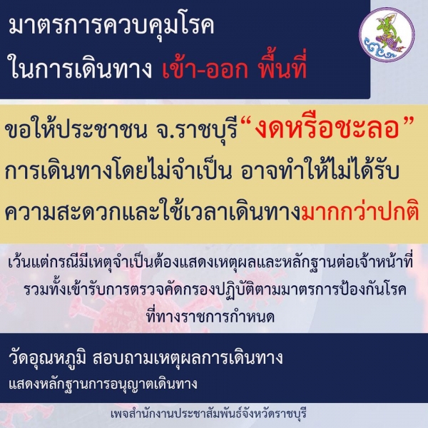 ประกาศจังหวัดราชบุรี เรื่องมาตรการป้องกันในการจัดกิจกรรมที่มีความเสี่ยงต่อการแพร่โรค