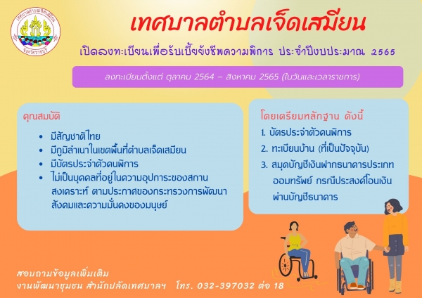 เปิดรับลงทะเบียนขอรับเงินเบี้ยยังชีพความพิการ ปีงบประมาณ 2565