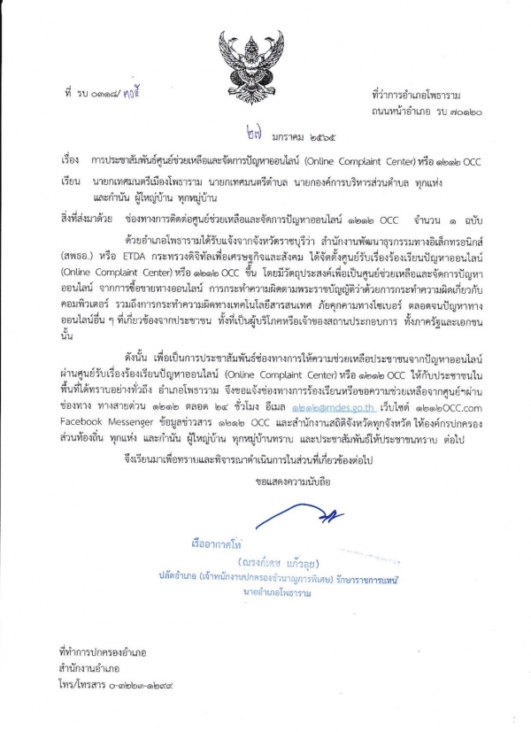 ประชาสัมพันธ์ศูนย์ช่วยเหลือและจัดการปัญหาออนไลน์ (Online Complaint Center)