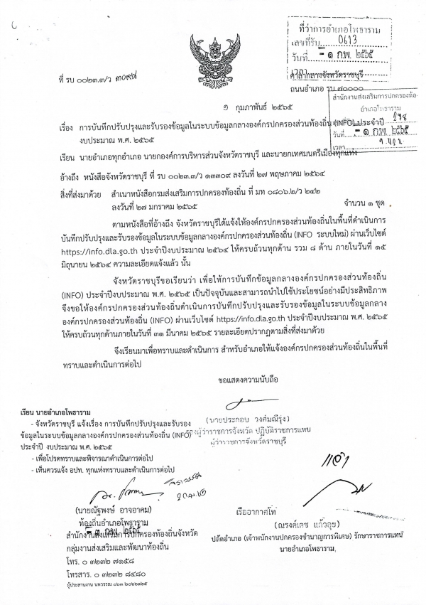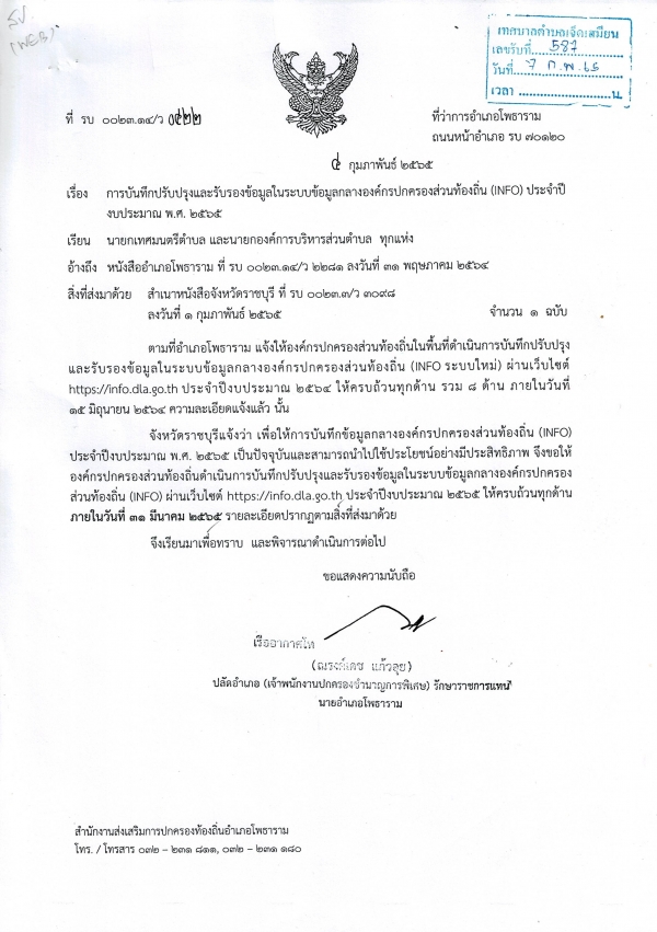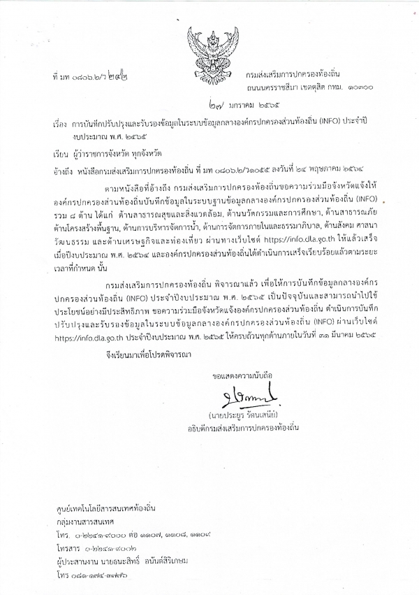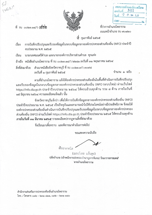 การบันทึกปรับปรุงและรับรองข้อมูลในระบบข้อมูลกลางองค์กรปกครองส่วนท้องถิ่น(INFO)ประจำปีงบประมาณ พ.ศ. 2565