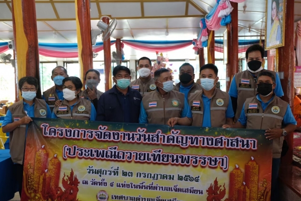 โดยเทศบาลตำบลเจ็ดเสมียนได้จัดกิจกรรมถวายเทียนพรรษา
