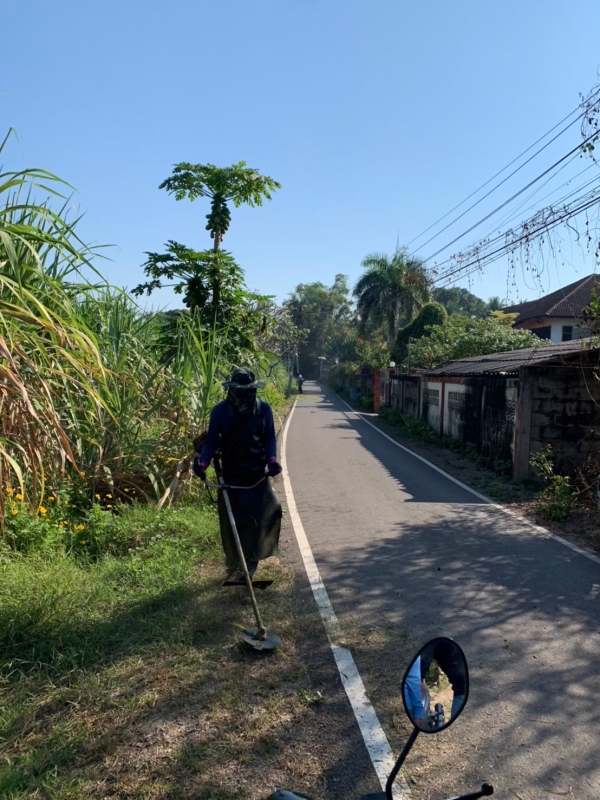 การตัดหญ้ากวาดถนนและทำความสะอาด ของกองสาธารณสุขและสิ่งแวดล้อม