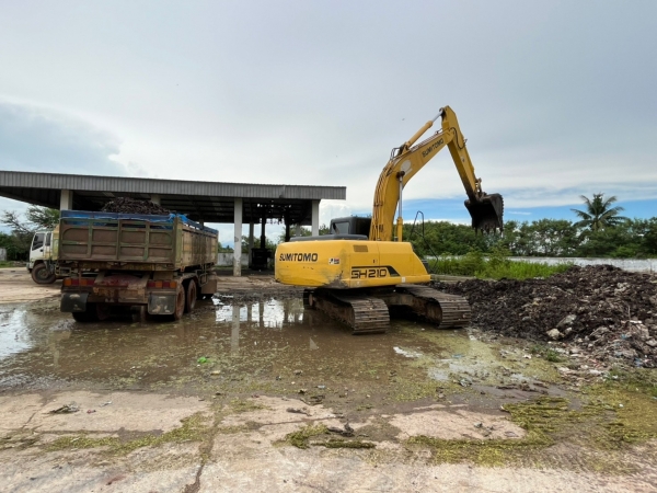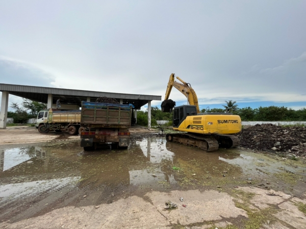การขนย้ายขยะจากบ่อขยะ ไปกำจัด เพื่อเป็นการปรับพื้นที่บริเวณบ่อขยะเทศบาลตำบลเจ็ดเสมียน