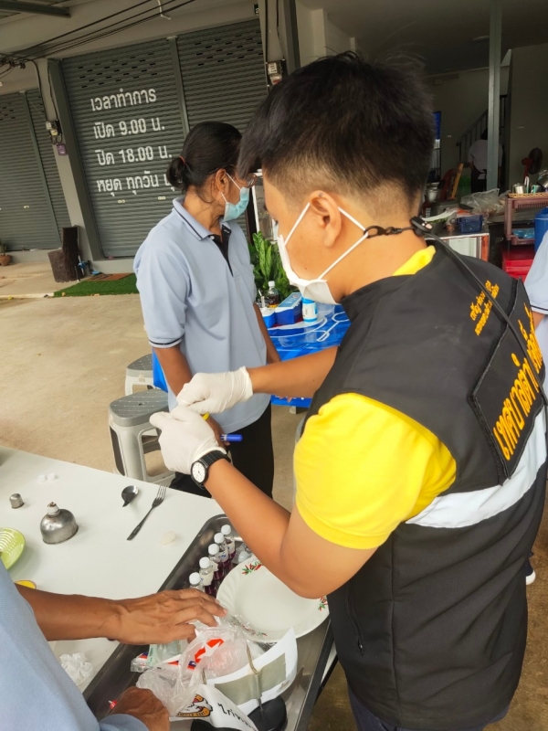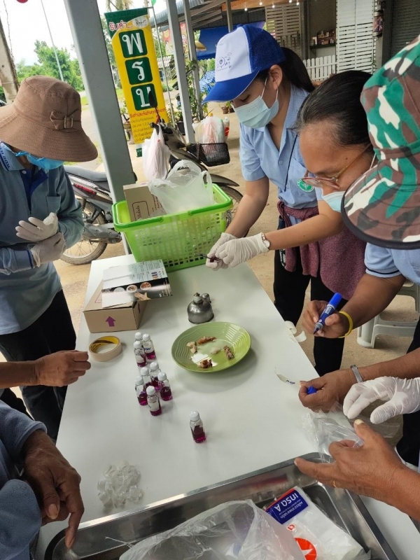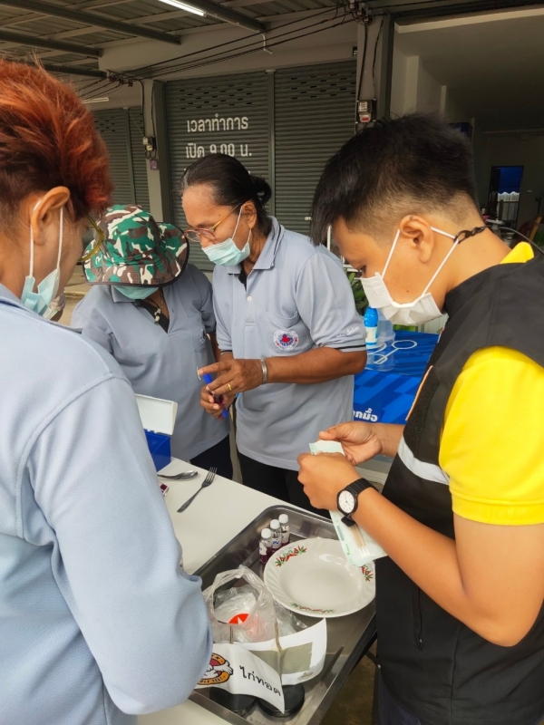 กองสาธารณสุขฯเข้าร่วมโครงการอาหารปลอดภัยใส่ใจผู้บริโภค ออกตรวจสารปนเปื้อนในอาหาร ร้านค้า แผงลอย ภายในตำบลเจ็ดเสมียน กับโรงพยาบาลเจ็ดเสมียนและ อสม.