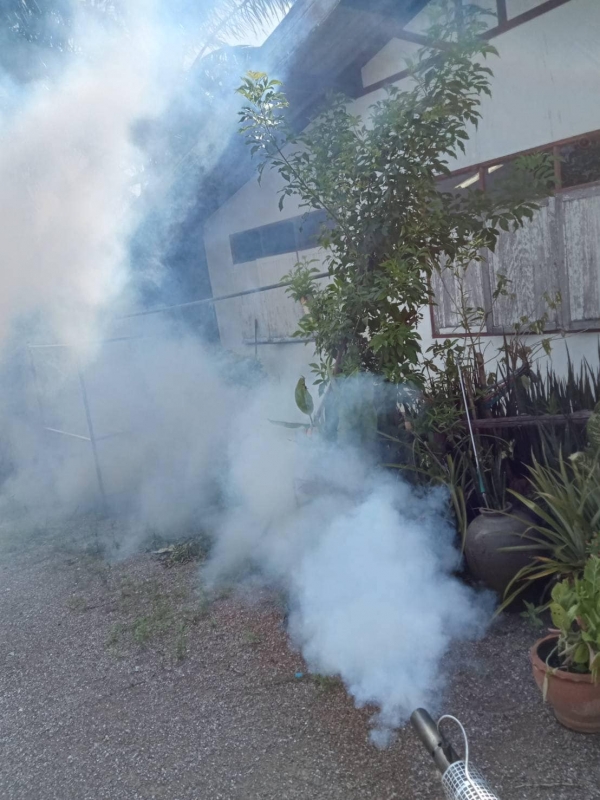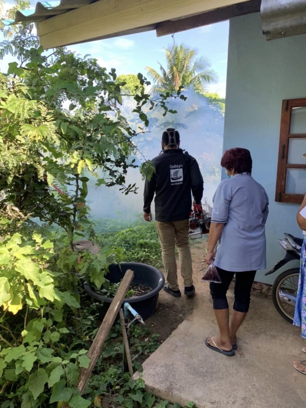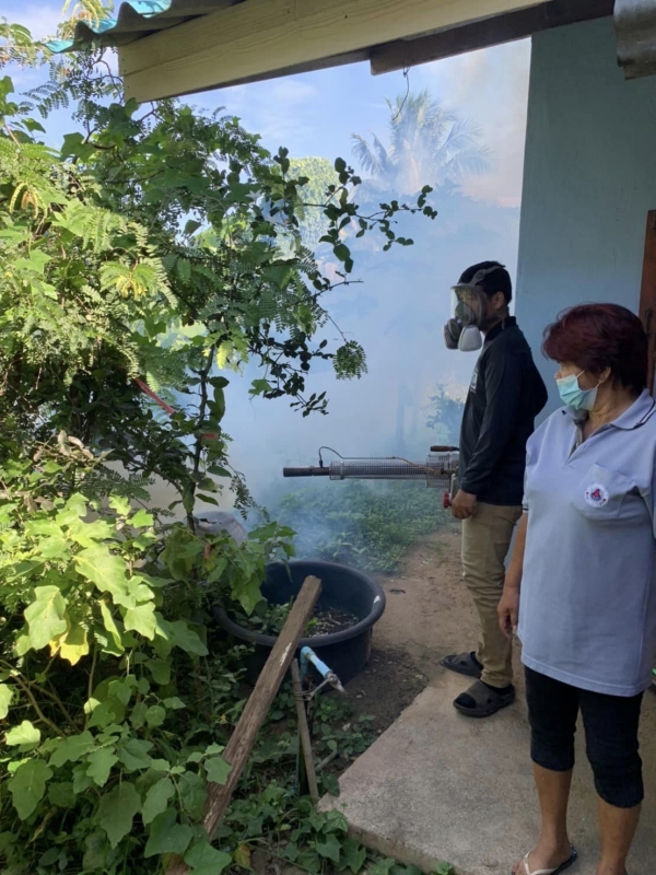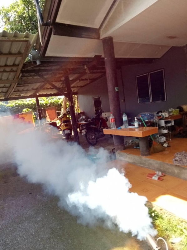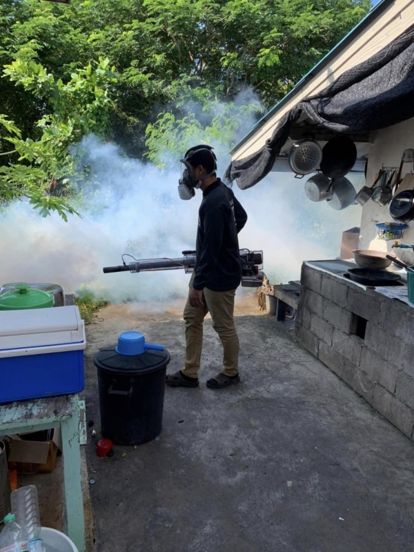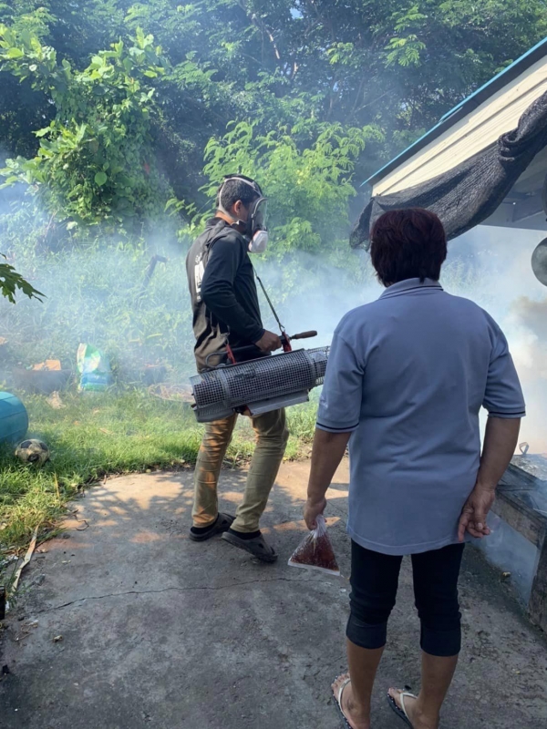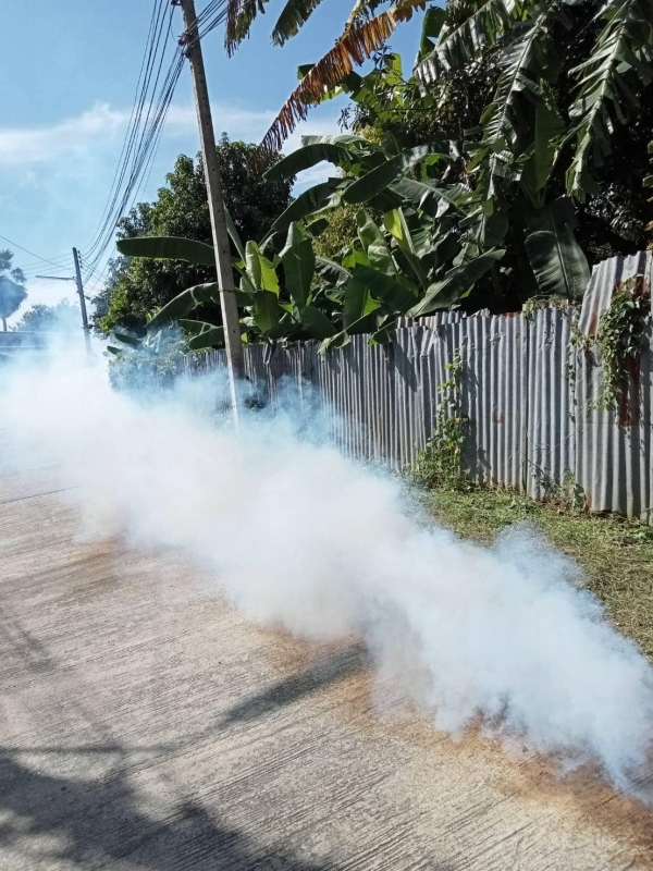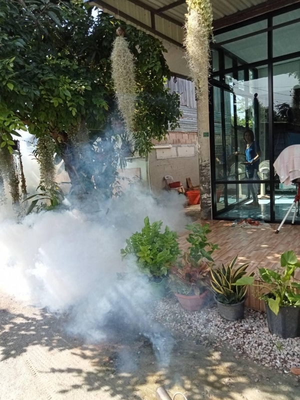 กองสาธารณสุขและสิ่งแวดล้อม เทศบาลตำบลเจ็ดเสมียน ได้ดำเนินการพ่นหมอกควันกำจัดยุงลายบริเวณพื้นที่ หมู่ที่ 2