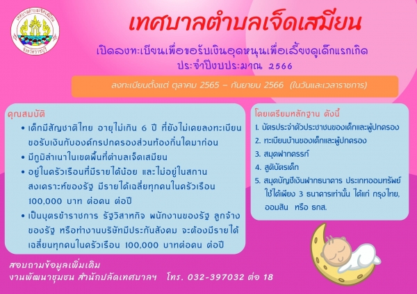 เปิดรับลงทะเบียนขอรับเงินอุดหนุนเพื่อการเลี้ยงดูเด็กแรกเกิด ประจำปีงบประมาณ 2566
