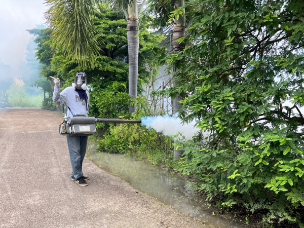 กองสาธารณสุขฯ ลงพื้นที่พ่นหมอกควันกำจัดยุงลาย หมู่ที่5และหมู่ที่6 ในพื้นที่ตำบลเจ็ดเสมียน