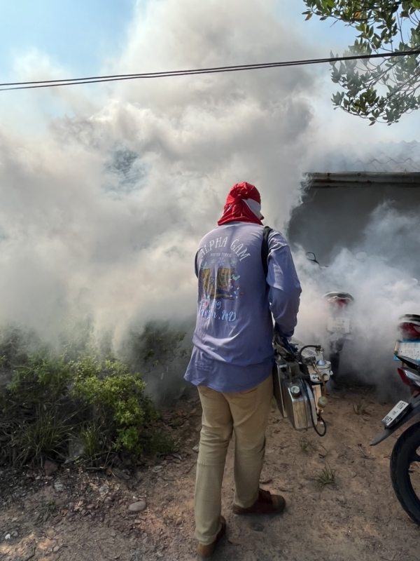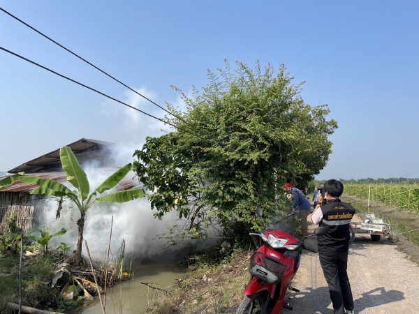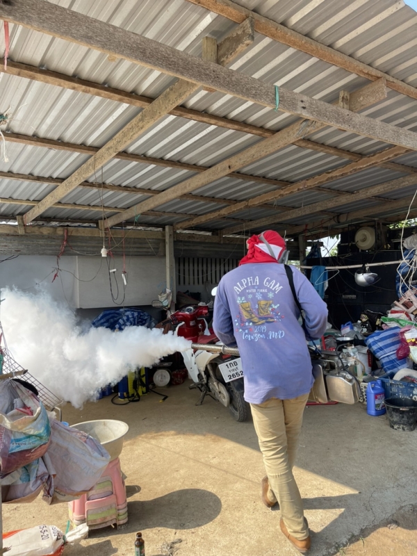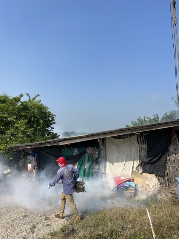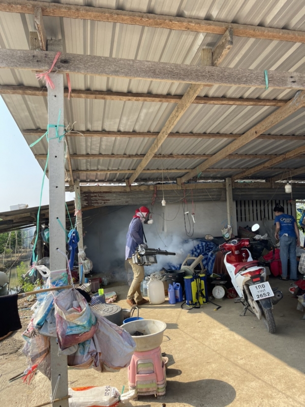 กองสาธารณสุขฯ ลงพื้นที่ทำการพ่นหมอกควันกำจัดยุงลาย หมู่5 (ชุมชนปลายคลองมะขาม)