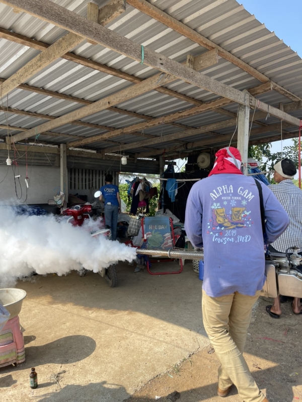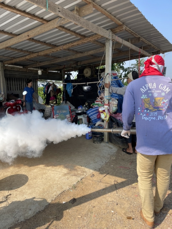 ลงพื้นที่ทำการพ่นหมอกควันกำจัดยุงลาย หมู่5 (ชุมชนปลายคลองมะขาม)