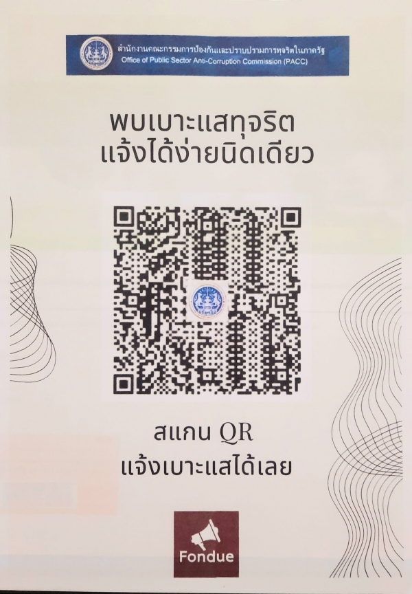 ประชาสัมพันธ์ช่องทางการแจ้งเบาะแสการทุจริต ผ่านทาง QR Code (Traffy Fondue) ของทางสำนักงาน ป.ป.ท.