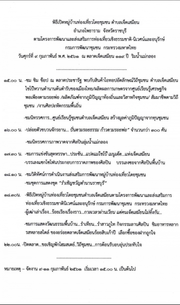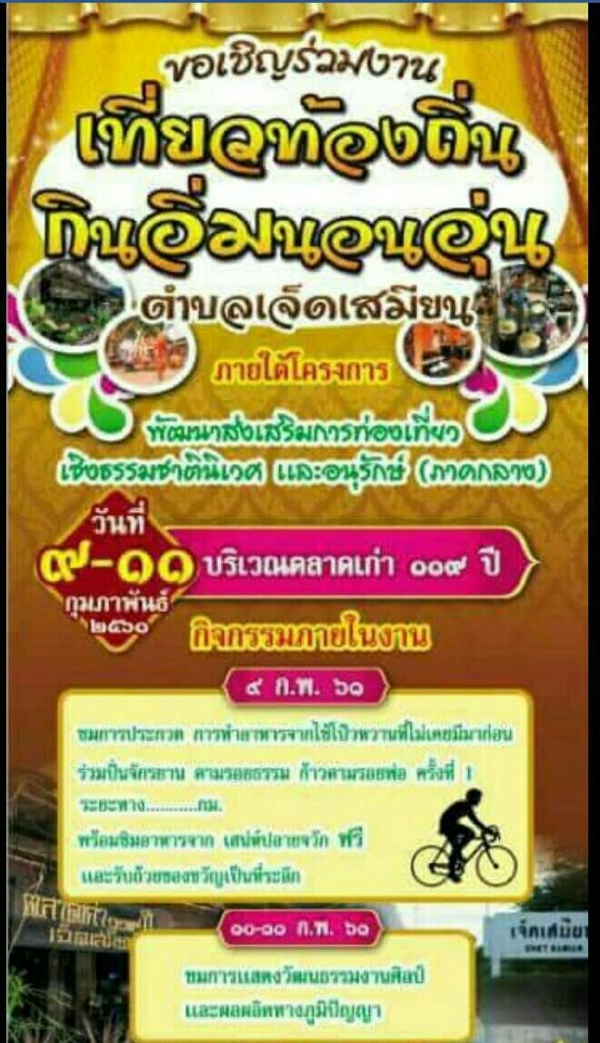 ขอเชิญร่วมงาน"เที่ยวท้องถิ่น กินอิ่มนอนอุ่น"ตำบลเจ็ดเสมียน