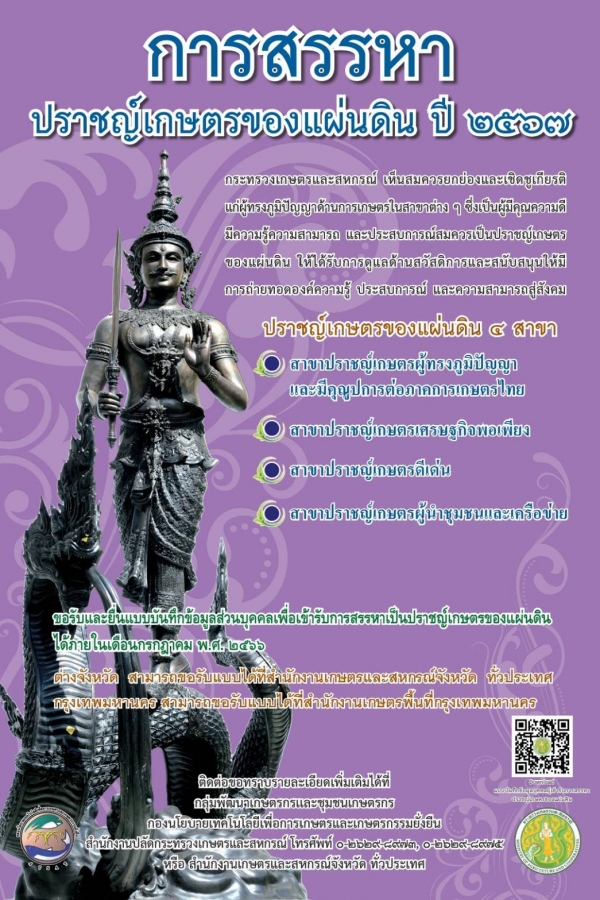 ประชาสัมพันธ์การรับสมัครบุคคลเพื่อเข้ารับการสรรหาเป็นปราชญ์เกษตรของแผ่นดิน ประจำปี ๒๕๖๗