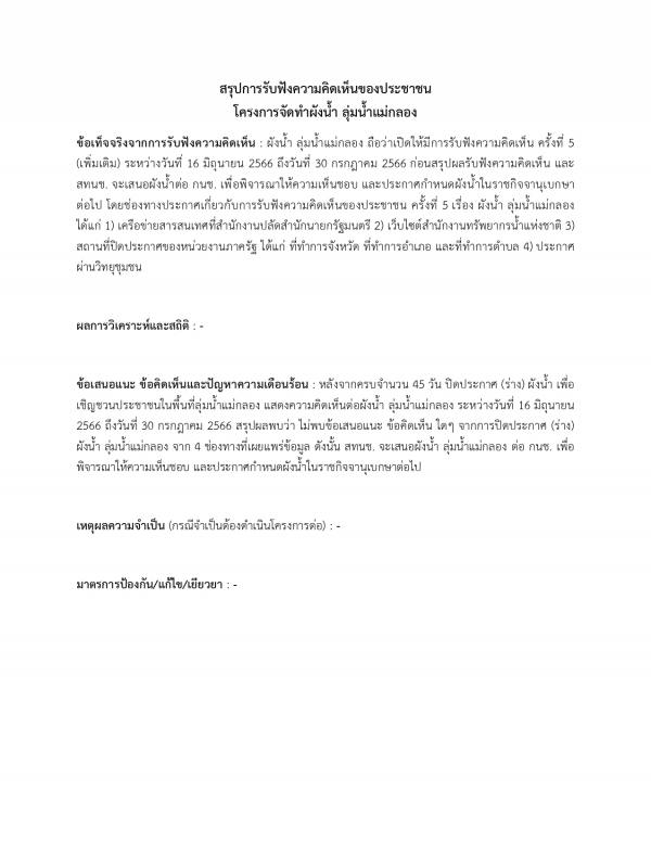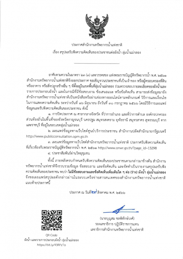 ประชาสัมพันธ์ประกาศสรุปผลรับฟังความคิดเห็นของประชาชนต่อผังน้ำ ลุ่มแม่น้ำแม่กลอง