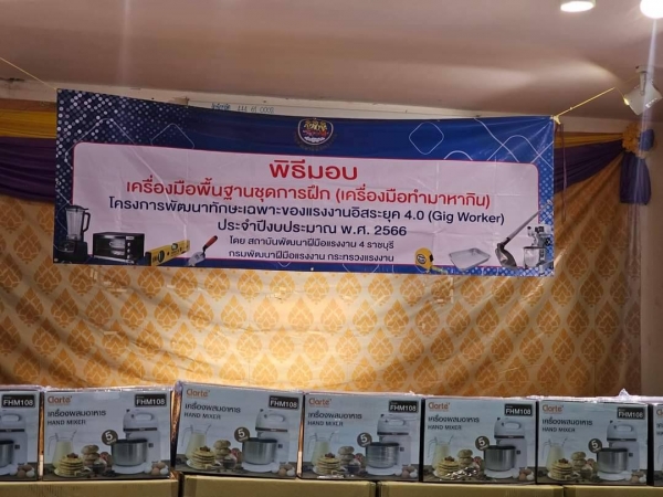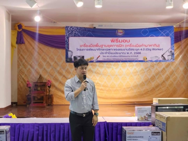 มอบเครื่องมือพื้นฐานชุดการฝึก (เครื่องมือทำมาหากิน)โครงการพัฒนาทักษะเฉพาะของแรงงานอิสระยุค 4.0 (Gig worker) ประจำปีงบประมาณ พ.ศ.2566