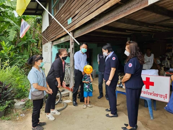 กาชาดราชบุรีลงพื้นที่ ร่วมกับนายอำเภอโพธาราม เจ้าหน้าที่ฝ่ายปกครองอำเภอโพธาราม เยี่ยมบ้านเด็กพิการ