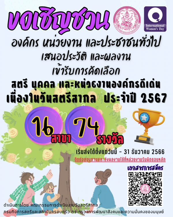การคัดเลือกสตรี บุคคล และหน่วยงานองค์กรดีเด่น เนื่องในวันสตรีสากล ประจำปี 2567