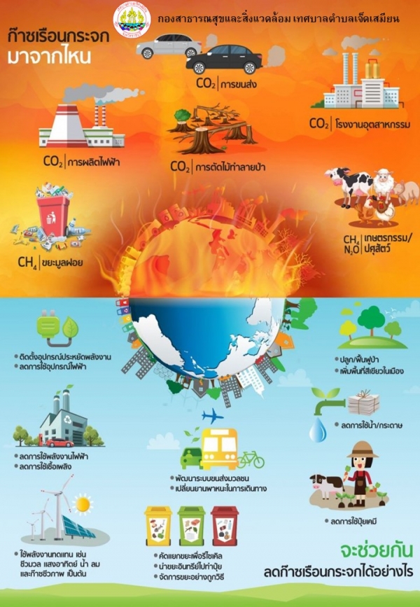 ประชาสัมพันธ์ความรู้ INFO ภาวะก๊าซเรือนกระจก กองสาธารณสุขและสิ่งเเวดล้อม เทศบาลตำบลเจ็ดเสมียน