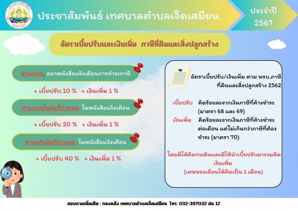 ประชาสัมพันธ์ อัตราเบี้ยปรับและเงินเพิ่มการชำระภาษีดินและสิ่งปลูกสร้าง ประจำปี2567