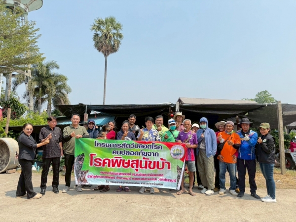 นายกเทศมนตรีตำบลเจ็ดเสมียน ร่วมกับผู้บริหารและคณะทีมงานกองสาธารณสุขฯ ลงพื้นที่ฉีดวัคซีนป้องกันโรคพิษสุนัขบ้า ตามโครงการสัตว์ปลอดโรค คนปลอดภัยจากโรคพิษสุนัขบ้า ประจำปีงบประมาณ พ.ศ. 2568 เทศบาลตำบลเจ็ดเสมียน อำเภอโพธาราม จังหวัดราชบุรี