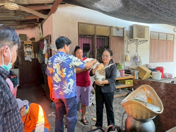 นายกเทศมนตรีตำบลเจ็ดเสมียน ร่วมกับผู้บริหารและคณะทีมงานลงพื้นที่ฉีดวัคซีนป้องกันโรคพิษสุนัขบ้าประจำปีงบประมาณ 2568