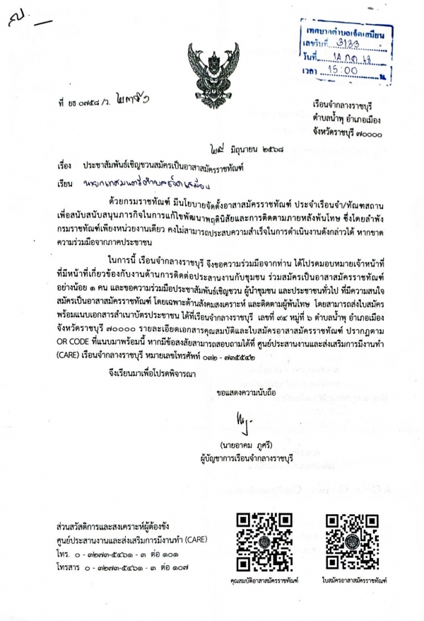 ขอประชาสัมพันธ์เชิญชวนสมัครเป็นอาสาสมัครราชทัณฑ์