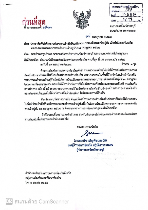 ประชาสัมพันธ์เชิญชวนประชาชนเข้าเฝ้ารับเสด็จพระบาทสมเด็จพระเจ้าอยู่หัว เนื่องในโอกาสวันเฉลิมพระชนมพรรษาพระบาทสมเด็จพราะเจ้าอยู่หัว 28 กรกฎาคม 2568