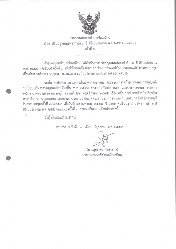 ประกาศปรับปรุงแผนอัตรากำลัง 3 ปี